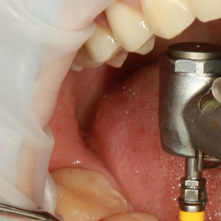 ▶ 잇몸을 절개하고 선택한 재료를 이식합니다. 소량 이식은 임플란트 식립과 동시에 가능하지만 대량 이식은 별도 진행됩니다.
